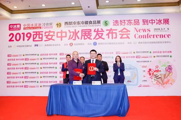 会议现场,首先由主办方北京龙品锡展览有限公司与陕西冷冻冷藏食品企业协会进行了继续合办2019春季中冰展暨第五届西部冷冻冷藏食品展的战略合作签约仪式。随后,中冰展组委会又与临夏壹清食品有限公司、北京唐壶(文化)有限公司2家展商代表现场签约合作。王海宁表示,不光2019春季中冰展的西安曲江国际会展中心这个举办地点受人欢迎,明年3月7-9日的这个举办时间也非常好。因为每年的3月底至9月初,冰淇淋和冷冻冷藏食品的旺季就要来了。这意味着,经销商订完货,马上就能铺到市场上去,以飞快的速度实现资金周转。