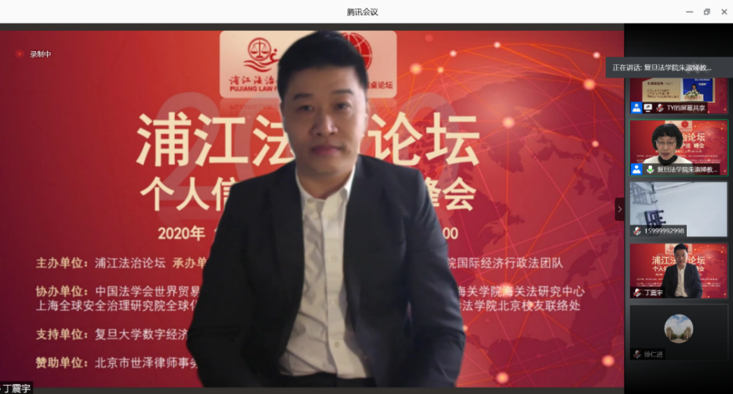 12月26日,浦江法治论坛“个人信息保护法”峰会暨第六届全球化与经济行政法研讨会通过腾讯会议成功举办。本次峰会主题是“大数据时代的金融立法与信息保护”,多所著名高校、科硏院所、立法/行政/司法部门和律师事务所等方面的专家学者150余人参加,对《个人信息保护法(草案)》立法完善、公共数据开放与个人信息立法保护、数据法学与中国金融数据保护、大数据时代的金融信息立法保护、中欧个人信息保护立法模式比较等论题展开深入探讨。峰会汇集各方精深智慧、研政商社、多元主体,共同研究国家治理与国际应对中的重大问题,经邦济世、道器兼修,得到广泛响应,直播平台在线观看人数达到41.3万次。 本次峰会由浦江法治论坛主办,由国际经济行政法圆桌论坛、复旦大学法学院国际经济行政法团队承办,由中国法学会世界贸易组织法研究会、上海市法学会海关法研究会/上海海关学院海关法研究中心、上海全球安全治理研究院全球化法律问题研究所、复旦大学北京校友会、复旦大学法学院北京校友联络处协办,由复旦大学数字经济法治研究中心、上海夏景文化艺术发展有限公司支持,并由北京市世泽律师事务所赞助。 整个峰会由浦江法治论坛副主席、国际经济行政法圆桌论坛主席、耶鲁学者、复旦大学法学院朱淑娣教授主持。朱教授指出,经过中国法律人长期以来的孜孜以求,现在中国的法治建设已经进入一个新的时代,在习近平法治思想的引领下,多元主体、道器兼修!在《民法典》即将施行,《个人信息保护法(草案)》公布的宏观背景下,本次峰会汇聚了国内多学科专家学者的精深智慧,共商大数据时代的金融立法与信息保护之长远大计,多方协同构筑兼具理论性、思辨性、实践性和独特性的创新探索平台,具有理论创新与实践结合的重要意义。