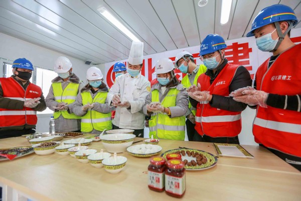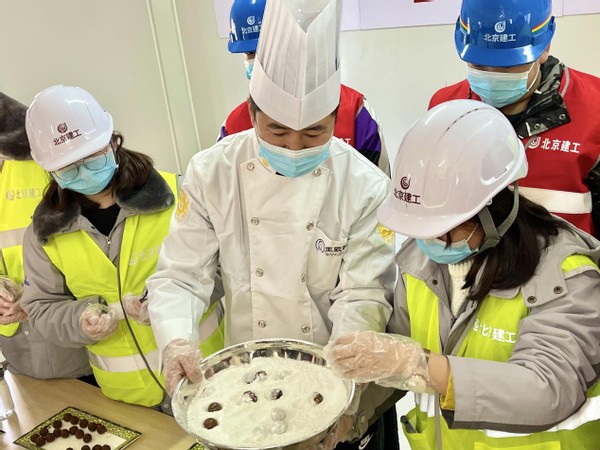 元宵节是阖家团圆的日子,很多人因为工作需要必须要坚守岗位而不能和家人一起度过。2月25日下午,老字号王致和带着腐乳非遗制作技艺,来到北京建工集团重点工程建设项目工地生活区,与建设者们一起赏花灯、猜灯谜。大家还一起用蜜豆、腐乳制作了正月十五的传统美食“元宵”,让坚守岗位、建设北京的工人师傅吃上一碗热元宵,过上一个欢乐喜气的元宵节。