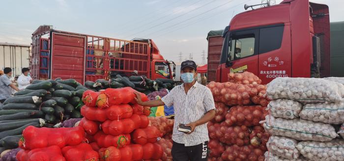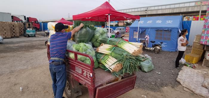 在暂停休市期间,大量农产品运输车辆和库房存货滞留在场内,新发地快速启动应急保障机制,组织调动全国分市场和种植基地,迅速调拨货源,所有农产品需经过两道手续方可入场交易,即在产地做好全面的安全检测,运抵临时交易场地后再次进行全面检查。记者现场看到蔬菜有白菜、菠菜、西兰花、韭菜……水果有西瓜、苹果、樱桃等,果蔬种类齐全,价格合理,多名商户表示,价格和交易量和以往并没有太大变化。