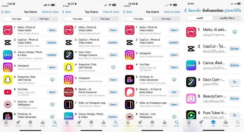 • 2025年2月,美颜相机凭借“AI换装”功能,在泰国、越南、日本、新加坡、马来西亚等12个国家夺得应用商店总榜第一。