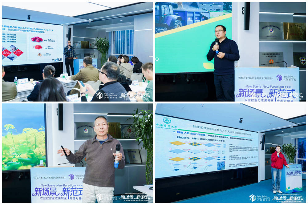 2025年10月24日,“AI在八家”2025系列沙龙第五期“新场景新范式:农业数智化成果转化专场对接会”在八家股份社学清嘉创大厦成功召开。本次活动由八家股份社主办,海淀区工商联、海淀区农业农村局、中国农业大学、中关村科技企业家协会科技成果转化专委会、翠湖科创联合主办,汇聚高校科研专家、科技成果转化平台、农业科技企业及投资机构等五十余家单位代表,共同围绕AI赋能农业数智化转型与科技成果落地展开深度对接与研讨。