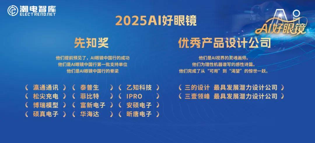 12月17日,由潮电智库主办,深圳市智能穿戴行业协会、华城天恩、深圳市平板显示行业协会、华强电子产业研究所共同协办的AI眼镜中国行“期末考试”峰会暨“AI好眼镜”颁奖活动在深圳圆满举行。