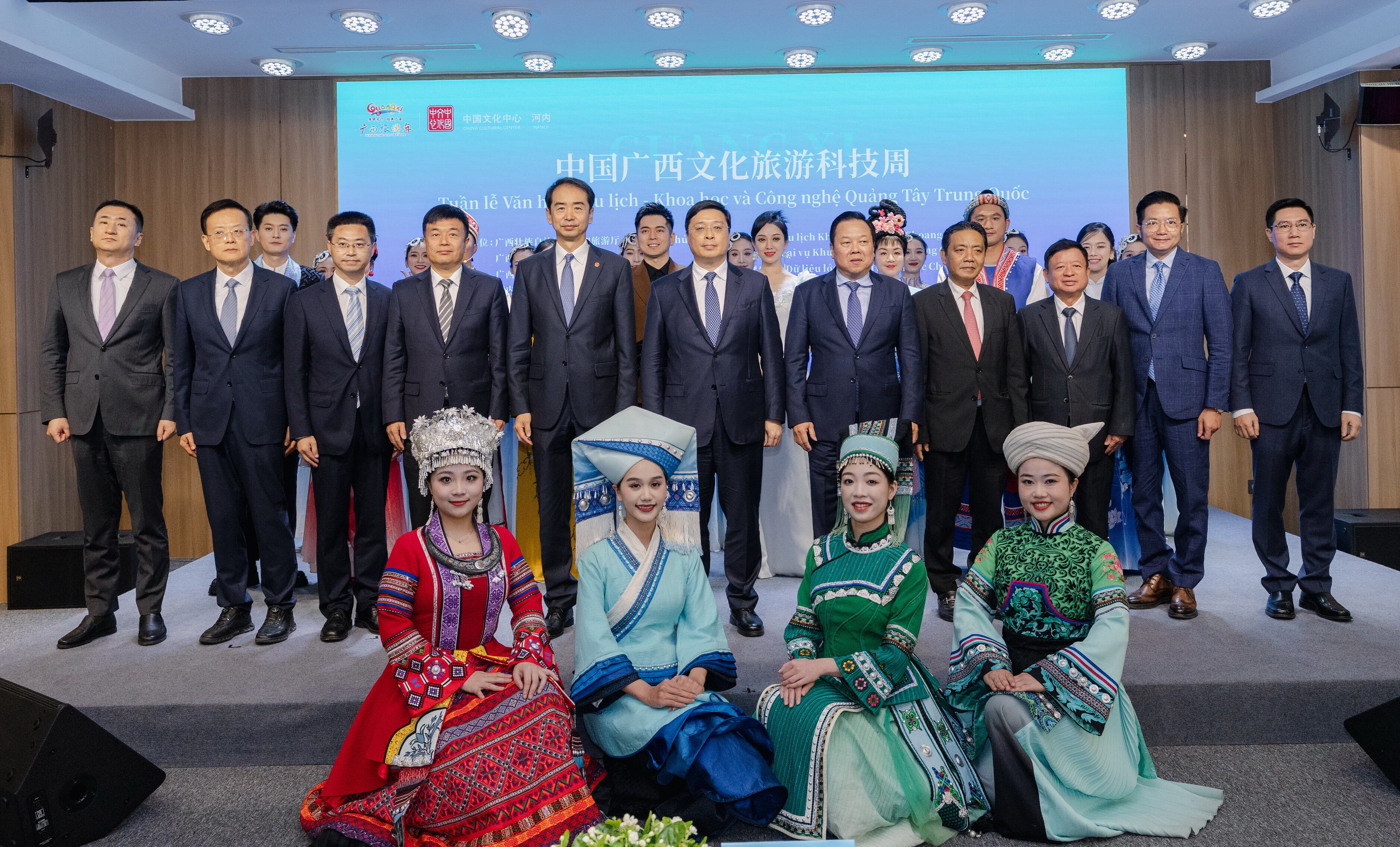 11月26日, 广西文化旅游科技周活动在越南河内开幕。中共中央委员、广西壮族自治区主席韦韬,中国驻越南大使何炜,越共中央委员、中央战略政策部副部长、越中友协主席阮黄英,越南文化体育和旅游部副部长黄道疆,以及来自中越外交、文化、旅游、教育等领域的代表出席启动仪式。
